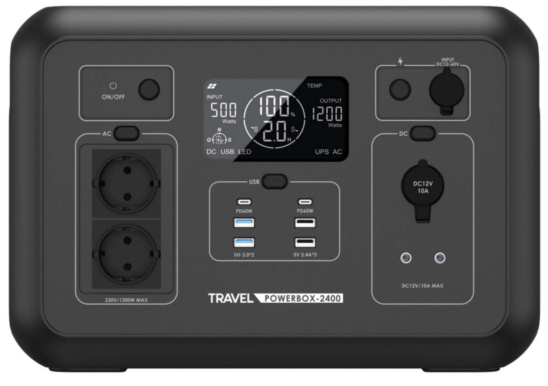 Przenośna stacja zasilania TRAVEL POWERBOX 2400 (1200W) 1008Wh